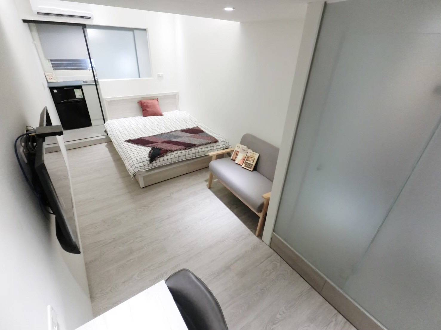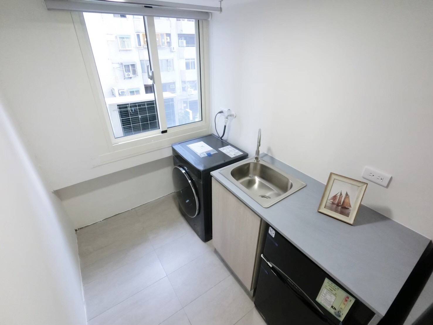 *全新整套家具電、雙人床、雙人沙發、書桌、系統櫃、獨立陽台、洗脫烘衣機、衛浴乾濕分離、流理台、飲水機